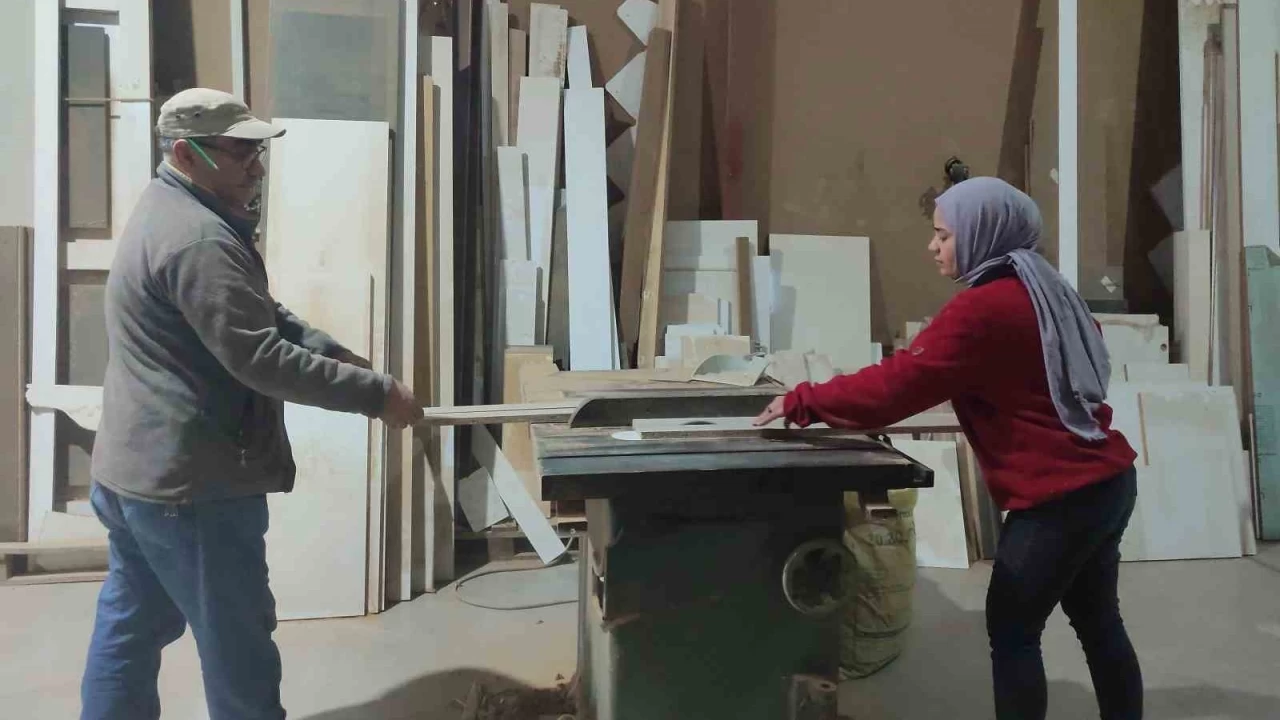 Kahramanmaraş'ın Dulkadiroğlu ilçesinde yaşayan 19 yaşında Hatice Kübra Topaktaş, 5 yıl önce mobilya ustası babası Fahri'nin yanında okulundan geri kalan zamanlarda atölyede çalışmaya başladı. Burada işin inceliklerini ve makineleri kullanmayı öğrenen Topaktaş, babasıyla birlikte çeşitli mobilya imalatı yapıyor.