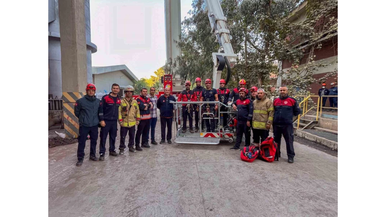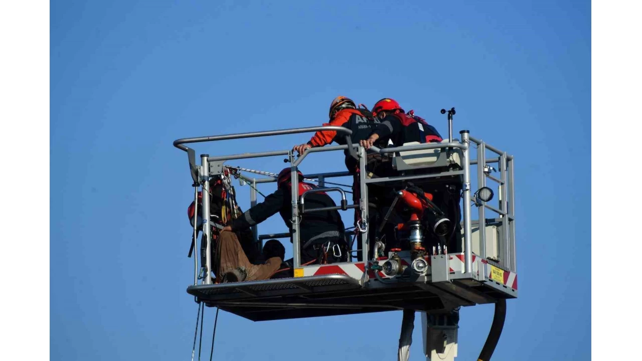 Ekipler, 90 metrelik merdivenli araçla bacanın üst kısımlarına doğru çıkarak işçilere ulaştı.