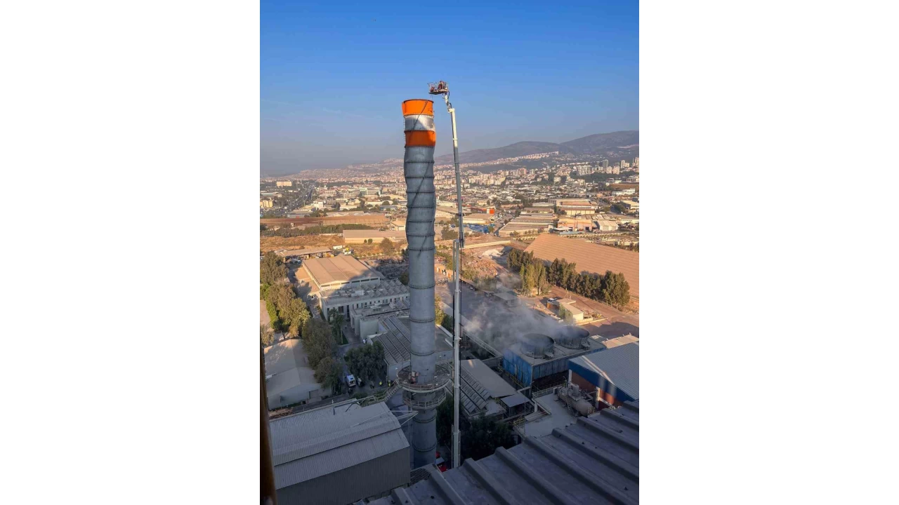 İzmir'in Bornova ilçesinde temizlik için çıktıkları fabrika bacasında iskelenin çökmesi sonucu mahsur kalan 2 işçi, 4 saatlik operasyonla kurtarıldı