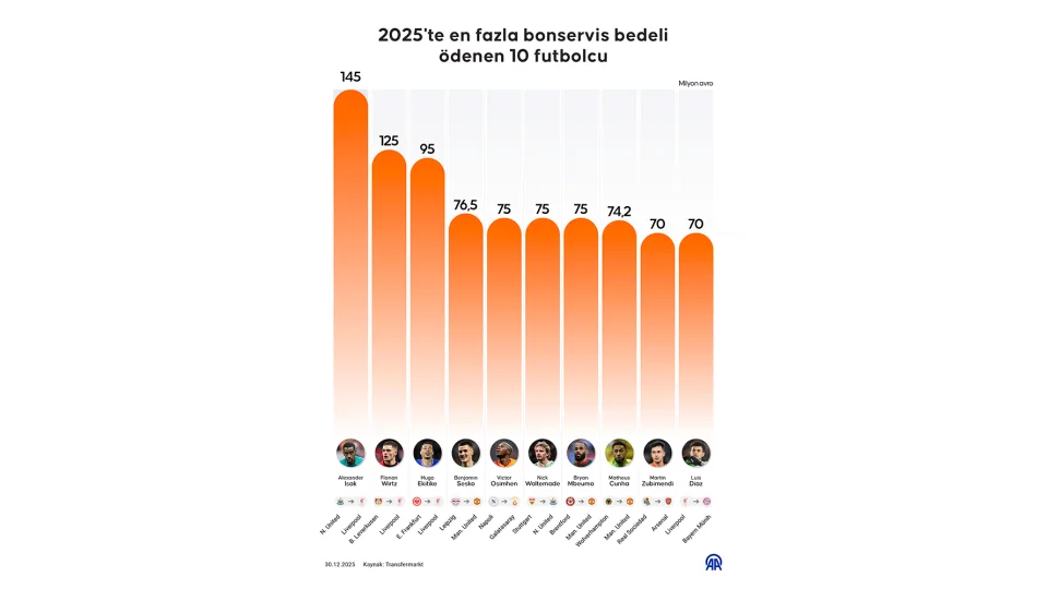 2025'te en fazla bonservis ödenen 10 futbolcu