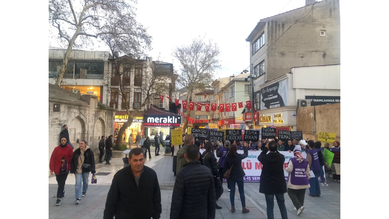 Çoğunluğu kadınlardan oluşan gruba erkekler de dövizler taşıyarak ve atılan sloganlara destek vererek katkıda bulundu.