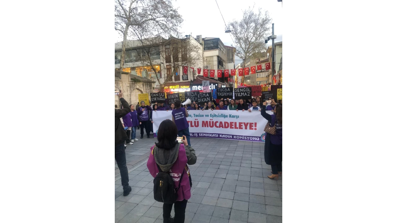 Kadınların evde, işte, sokakta, okulda, özel hayatlarında uğradıkları şiddet, hareket, taciz, mobbing ve cinsiyetçi yaklaşımlar hep bir ağızdan kınandı.