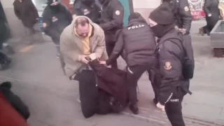 Bunun üzerine Ankara polisi sert müdahalede bulundu. Ulus'ta ellerinde afiş olan kadınları polis yerde sürükleyip tekmeledi. Polis 2'si kadın 2'si çocuk toplam 34 kişiyi ters kelepçeleyerek gözaltına aldı.