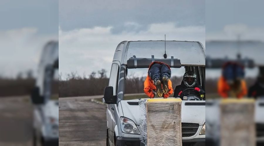 Rus dublör 80 km hızla giden minibüsün içinden mermi gibi geçti