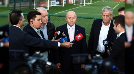 Nihat Özdemir, A Milli Futbol Takımı'nın Riva'da Hasan Doğan Milli Takımlar Kamp ve Eğitim Tesisleri'ndeki antrenmanı sırasında, TFF 1. Başkan Vekili Servet Yardımcı, TFF Yönetim Kurulu Üyeleri Mustafa Çağlar ve Selim Soydan ile basın mensuplarına açıklamada bulundu.