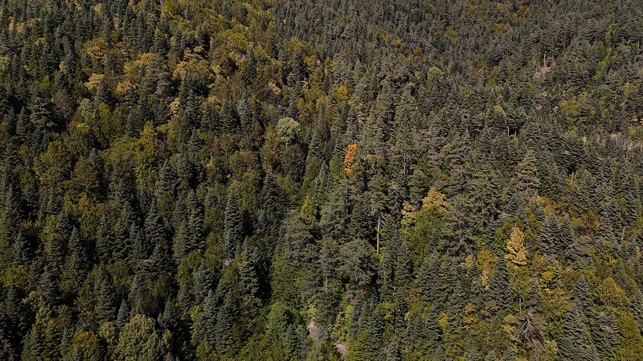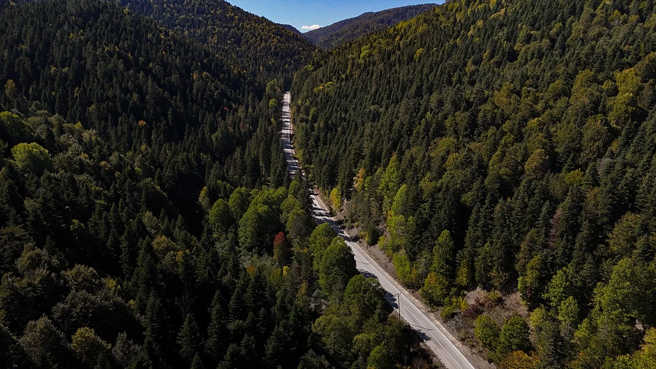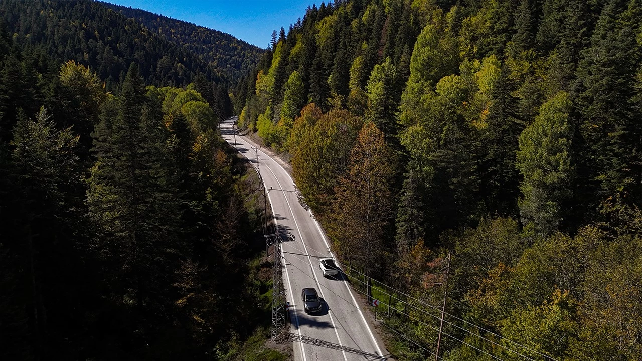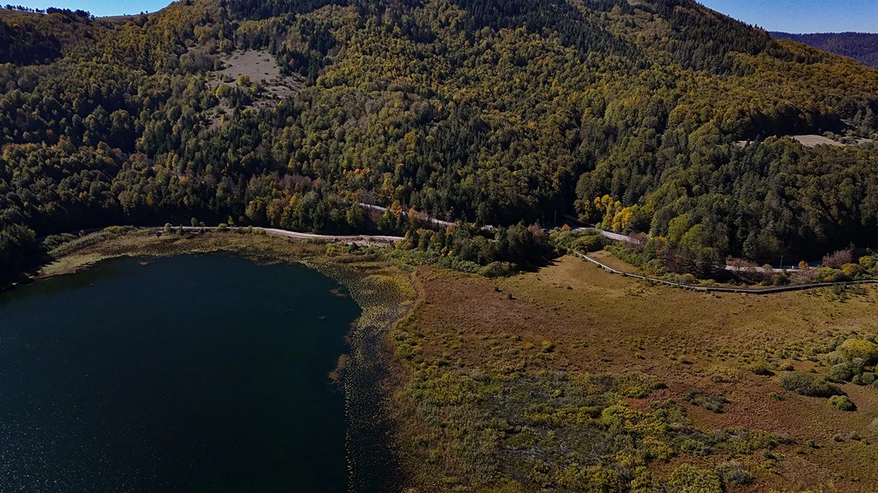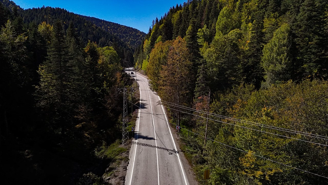 Bolu'nun gözde turizm merkezi olan Abant Gölü Milli Parkı'nda sonbahar renklerine bürünen ağaçlar, görenleri mest etti. Dronla kaydedilen görüntüler kartpostallık görüntüler oluşturdu.