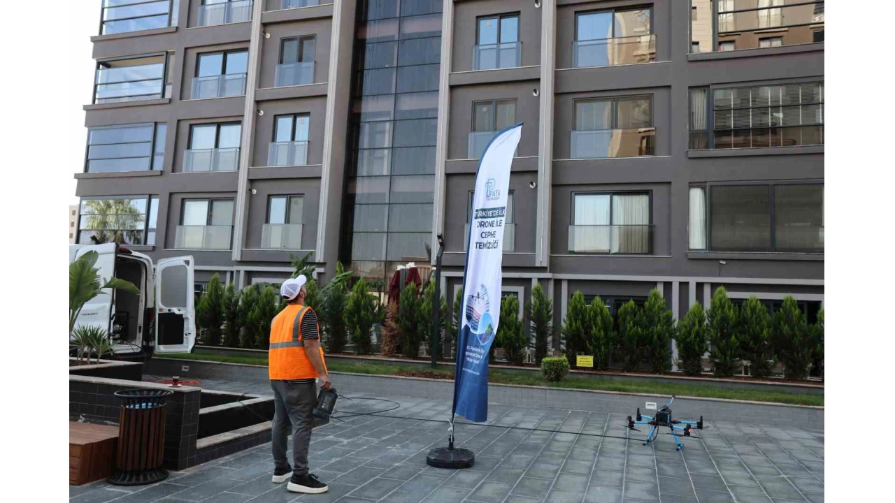 Dronlar hayatımızın her alanına girerken Adana'da yüksek katlı binaların dış cepheleri, güvenlik ve hız açısından artık dron ile temizlenmeye başlandı