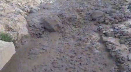 Ağrı Dağı'nın yüksek kesimlerinde bulunan karların erimesi sonucu oluşan kaya, taş ve çamur selini gören vatandaşlar hayrete düştü