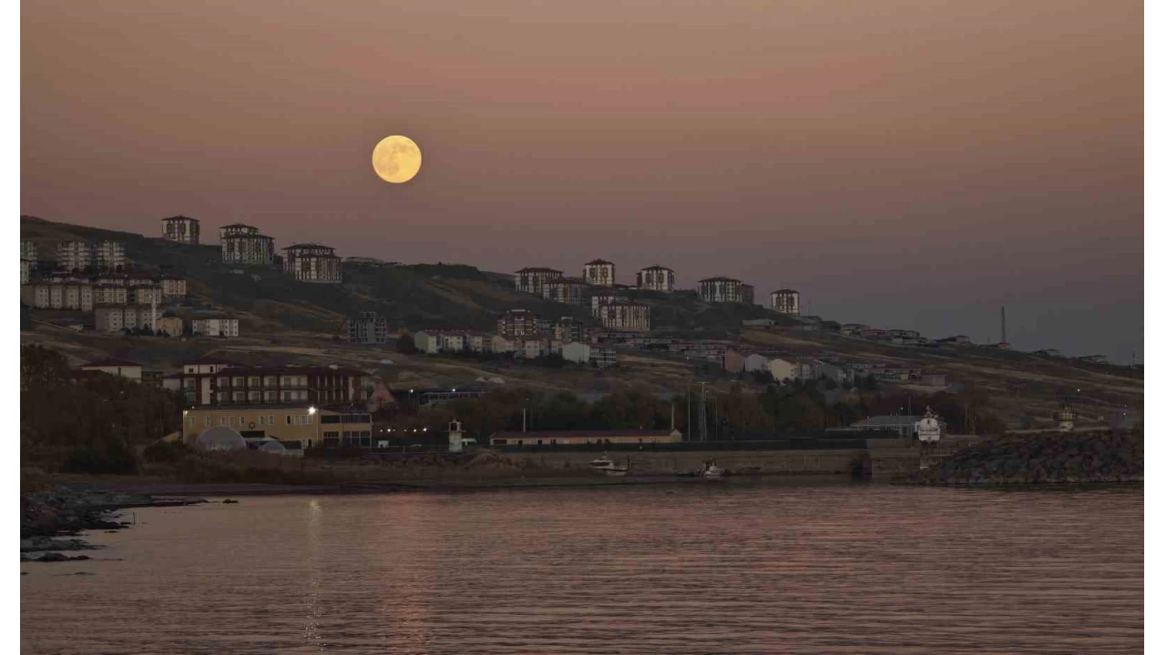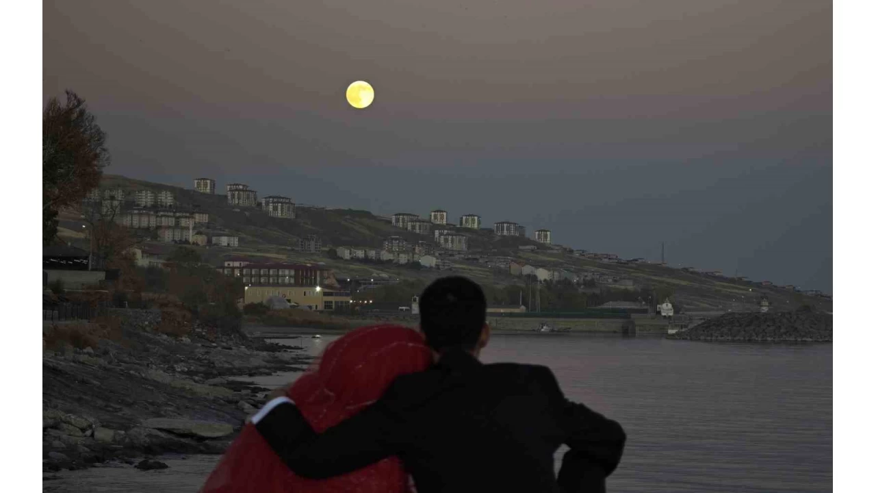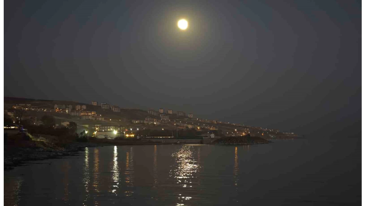 Yılın en büyük ve en parlak dolunayı olan "Kunduz Süper Ay" yükselirken Van Gölü'nde oluşturduğu yakamoz hayranlık uyandırdı.