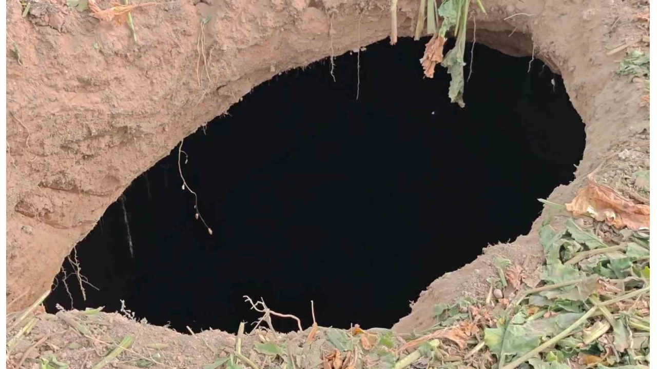 Edinilen bilgiye göre, yaklaşık 2 metre çapında ve 15 metre derinliğinde olduğu belirlenen obruk, tarlada pancar hasadı yapan çiftçi tarafından fark edildi.