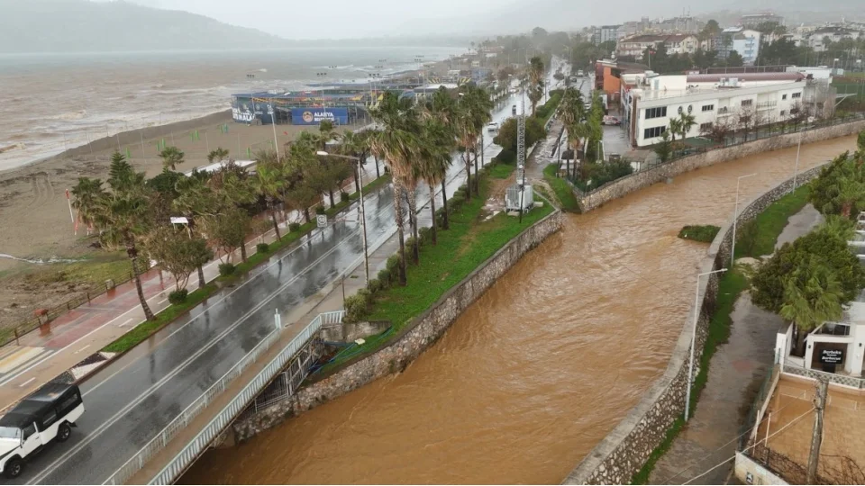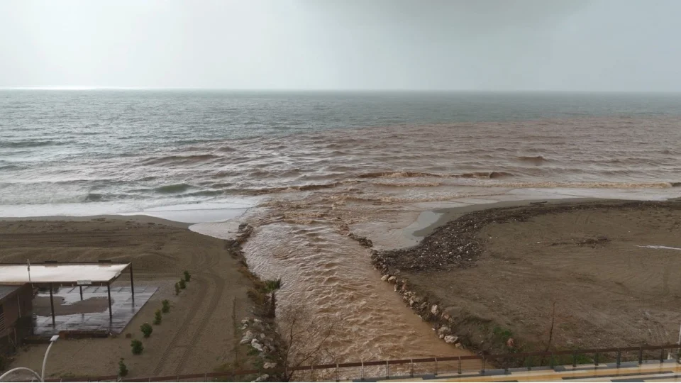 Özellikle yüksek kesimlerde etkili olan yağışlar sonrası derelerden gelen çamurlu sular denize ulaştı. Bu durum sahil şeridinde ilginç görüntülere neden olurken, denizin bir kısmının mavi, bir kısmının ise kahverengi renge büründüğü görüldü.