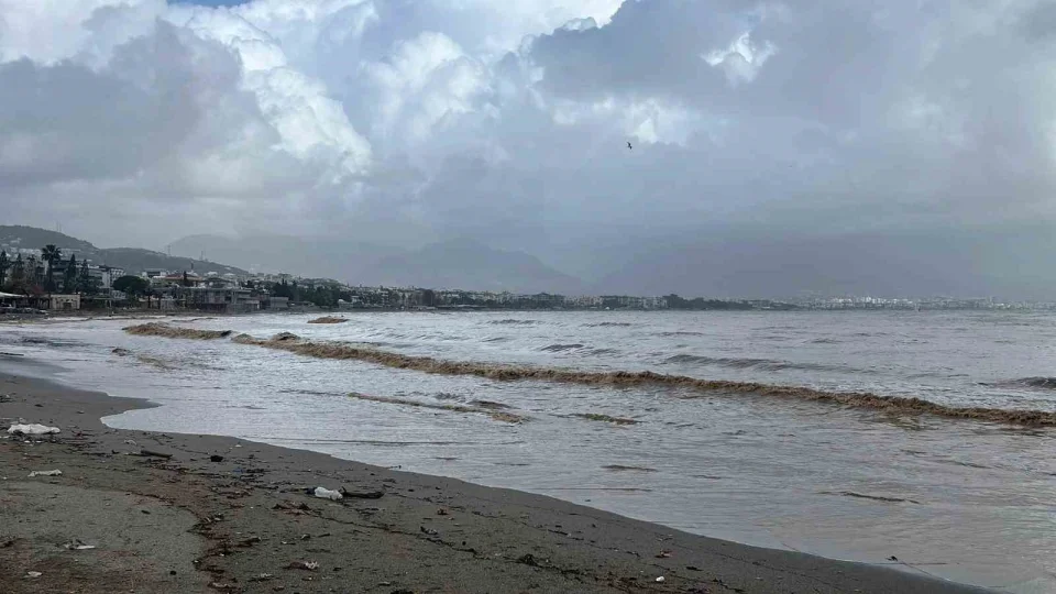 Alanya'da toz taşınımı ve sağanak yağış denizin rengini değiştirdi