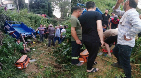 Zonguldak'ın Alaplı ilçesinde 'pat pat' diye adlandırılan tarım aracının tarlaya uçtuğu kazada 1'i ağır olmak üzere 13 kişi yaralandı
