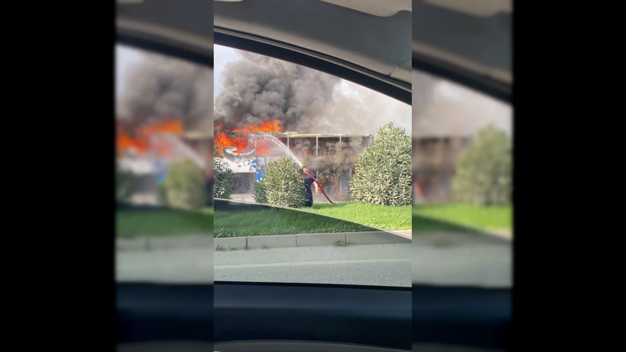 Hatay'ın Antakya ilçesinde seyir halindeki Metro Turizme ait yolcu otobüsü alev alev yandı.