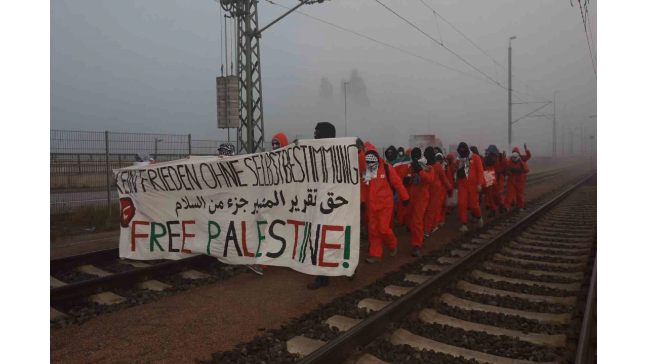 Gösteriyi düzenleyen grubun sözcüsü Jule Fink, "Gazze ve Batı Şeria'da her gün tanık olduğumuz acılardan dehşete düşüyoruz. Fakat Filistinlilerin kendi geleceğini tayin hakkı için yapılan protestolar acımasızca bastırılıp sansürlenirken, Alman hükümeti aşırı sağcı İsrailli politikacılara kur yapıyor ve böylece savaş suçlarına ortak oluyor. Buna izin vermeyeceğiz. İşte bu yüzden bugün buradayız ve bu ölümcül taşımaları engelliyoruz" diye konuştu.