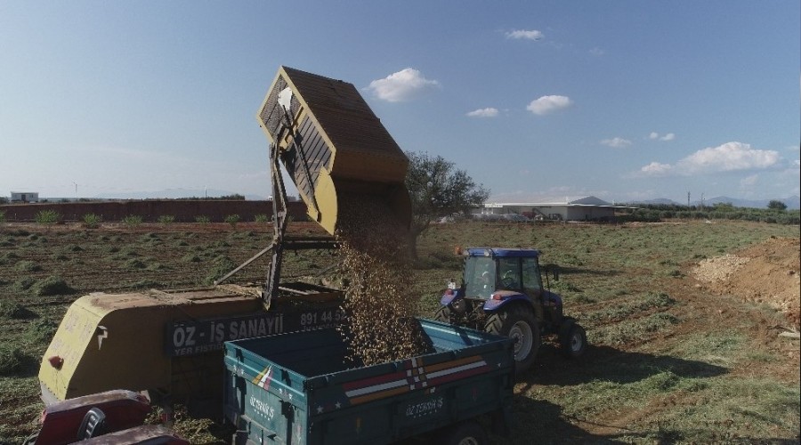 Antalya'nın Aksu ilçesinde gerçekleşen fıstık hasadında bir ilk yaşandı. Örtü altı üretimi bırakıp 100 dönüm alan üzerinde yetiştirdiği yer fıstığında modern tarım yöntemleri kullanan çiftçi, hem verimi artırtırdı hem de hasatta kullandığı son teknoloji tarım makineleriyle ürün kaybını en aza indirdi