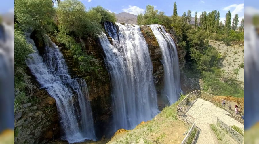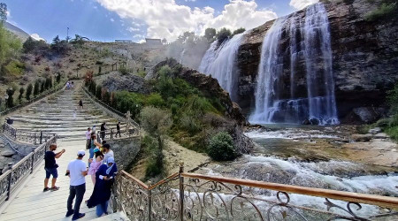 Uzundere'de bulunan, dünyanın 3'üncü, Asya ve Avrupa'nın en yüksek şelalesi olan ve UNESCO tarafından dünya miras listesine aday gösterilen şelaleye yerli ve yabancı turist akını devam ediyor