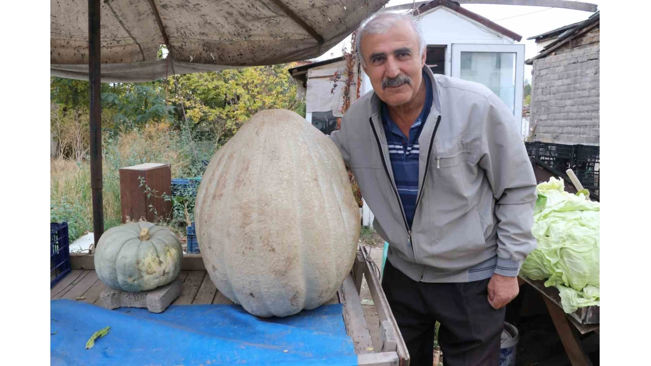Sivas'ta bir çiftçinin ata tohumundan yetiştirdiği 51 kilogramlık dev bal kabağı ilgi odağı oldu