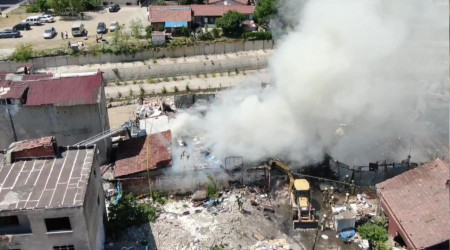 Ataşehir'de kağıt toplayıcılarının kağıtlarını ve kartonlarını biriktirdiği bir depoda yangın çıktı. Deponun ve içerisindeki kağıt ve kartonlarında da yanması nedeniyle çevreye yoğun duman ve alev yükseldi. Yanan depo ve itfaiyenin müdahalesi havadan görüntülendi.