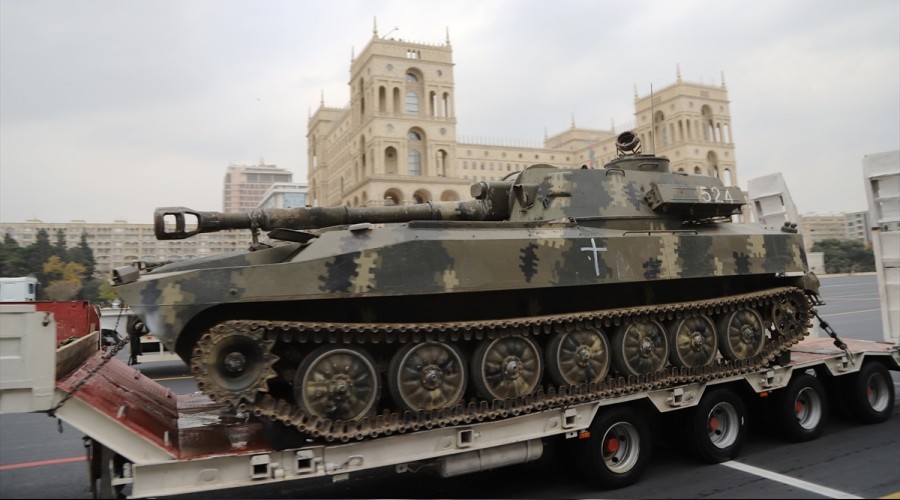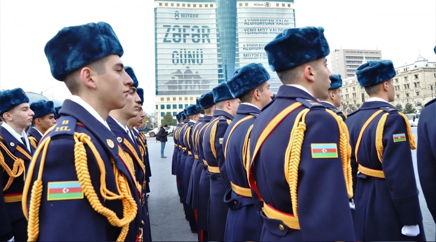 Azerbaycan Silahlı Kuvvetlerinin katılımıyla gerçekleştirilecek tören için provalar yapılıyor.