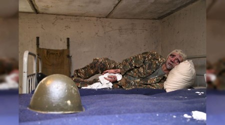 Bazı asker maketlerinin kafaları gökyüzüne doğru bakıyor. Bununla, Azerbaycan ordusunun savaşta kullandığı insansız hava araçlarının Ermenistan askerleri üzerinde bıraktığı korkuya atıfta bulunuyor.