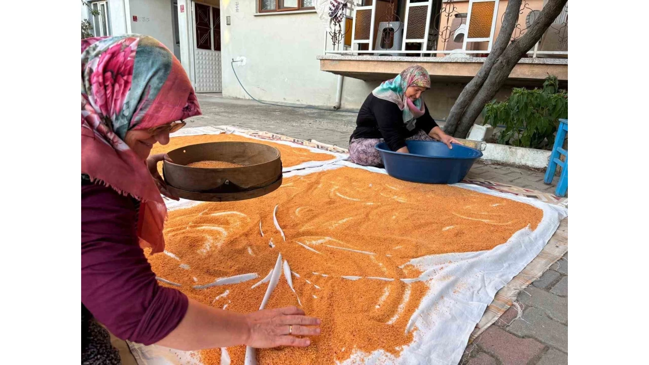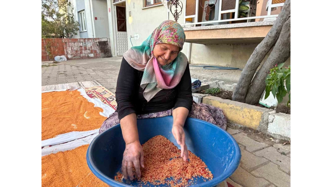 Kışa hazırlığın simgesi haline gelen Sındırgı tarhanası, ilçede hem sofraların hem de gönüllerin vazgeçilmezi olmaya devam ediyor.