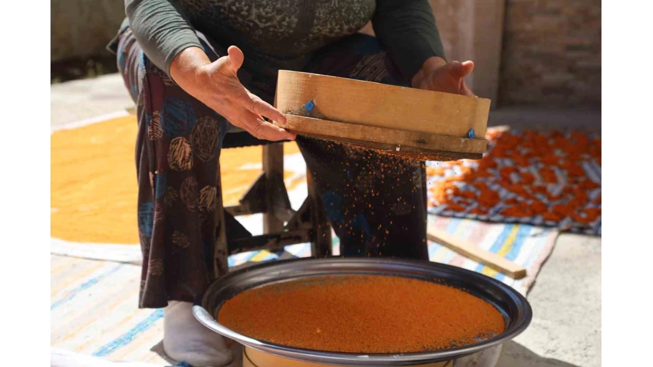 Köy meydanlarında ve mahalle aralarında bahçelere serilen tarhana bezleriyle adeta renk cümbüşüne dönen manzaralar, görenleri geçmişe götürüyor. Kadınların birlikte çalışarak ortaya koyduğu bu imece geleneği, hem dayanışmanın hem de doğal üretimin en güzel örneklerinden biri olarak yaşatılıyor.