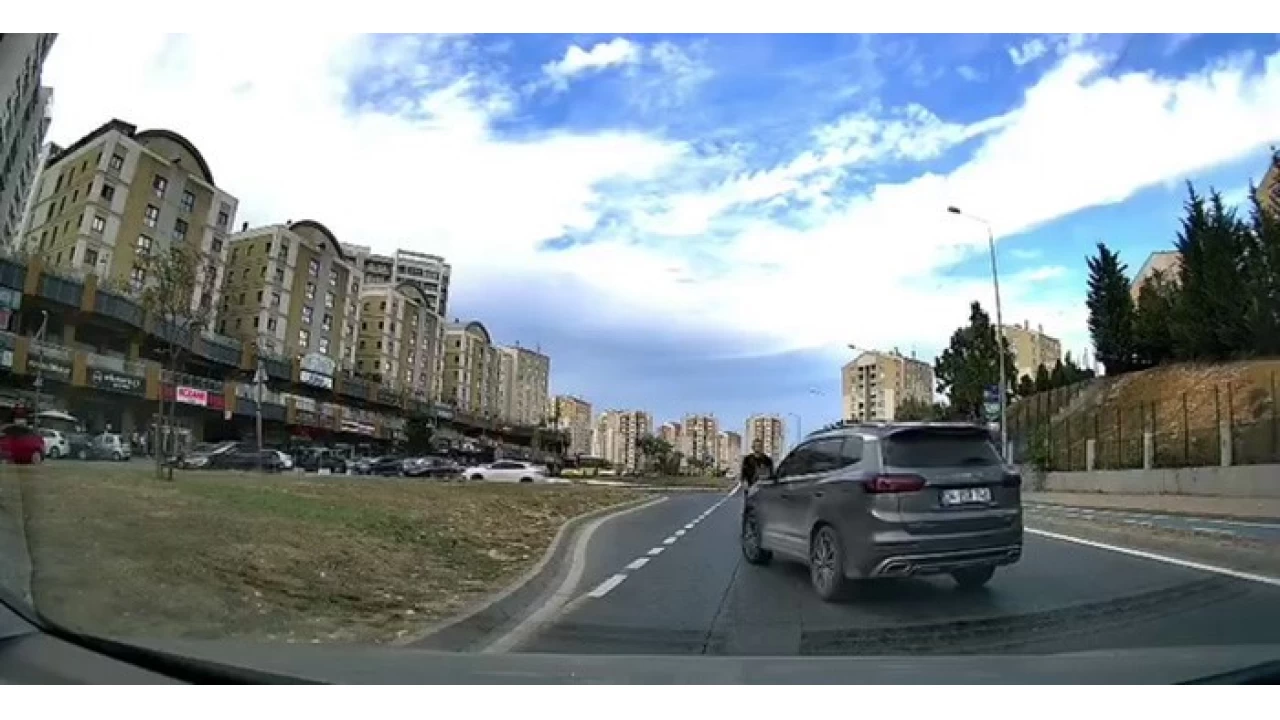 Olay, geçtiğimiz gün Kayaşehir'de meydana geldi. Trafikte birbirlerinin önüne kırdıkları gerekçesiyle tartışan iki sürücü, sinirlerine hâkim olamadı. Araçlardan biri diğerinin önünü keserek durdu. Araçtan inen sürücü öfkeyle diğer araca doğru yöneldiği sırada, direksiyon başındaki sürücü korkarak gaza bastı.