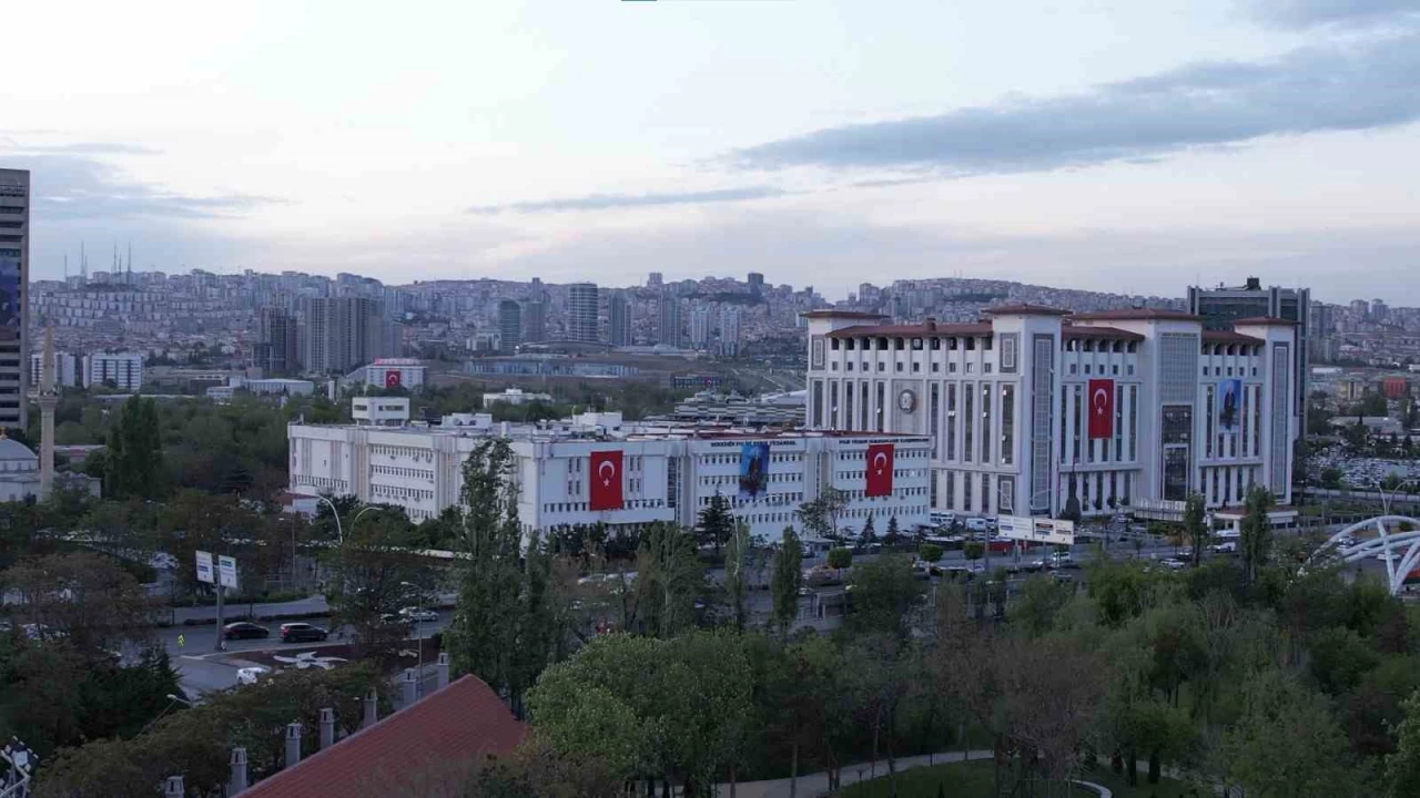 Çankaya, Keçiören ve Altındağ'a asılan dev ay yıldızlı bayraklar dron ile havadan görüntülendi.