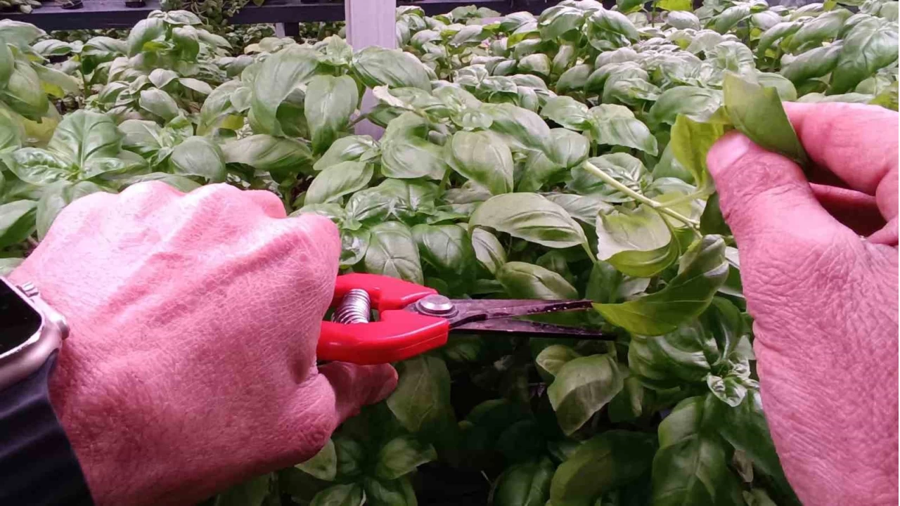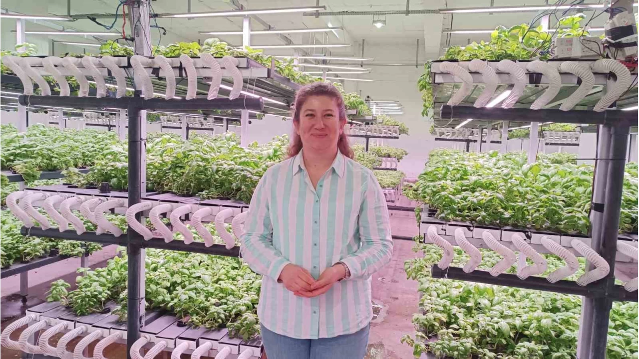Yaklaşık 30 milyon TL'lik yatırımla eksi birinci katta hayata geçirilen hidroponik sera, 1100 metrekarelik dikey üretim alanıyla klasik 6 dönümlük seraya eş değer kapasite sağlıyor. Topraksız tarım yönteminin en gelişmiş örneklerinden biri olan tesiste, fesleğen başta olmak üzere pek çok aromatik bitki üç katlı sistemde yıl boyunca kontrollü şekilde yetiştiriliyor.