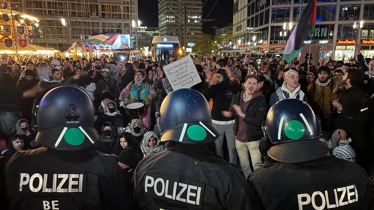 Almanya'nın başkenti Berlin'de, İsrail'in insani yardım ulaştırmak üzere Gazze'ye doğru yol alan Küresel Sumud Filosuna saldırısı ve aktivistleri alıkoyması protesto edildi. Berlin polisi göstericilere sert müdahalede bulunurken çok sayıda göstericiyi de gözaltına aldı.