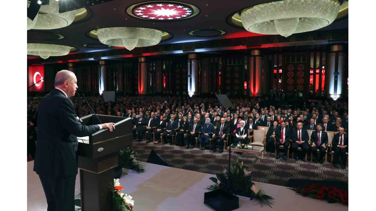 "Asırlar boyunca İ'la-yi Kelimetullah davasının sancaktarlığını yapmış, barışın, huzurun, iyilik ve adaletin hamiliğini üstlenmiş bir millet olarak bugün de aynı hassasiyetle hareket ediyoruz" ifadelerini kullanan Erdoğan, "Dostlarımızı en zor zamanlarında yalnız bırakmıyor; dünyanın neresinde olursa olsun, mazlumların imdadına koşuyoruz. Savaş ve çatışmaların sona erdirilmesinden insani kriz ve afet bölgelerindeki yardım çalışmalarına; kurumlarımızla, kadrolarımızla hem sahada hem de masada güçlü bir varlık gösteriyoruz.102 yıllık Cumhuriyet tecrübemizin ışığında, tüm bu başarıları inşallah çok daha yüksek seviyelere çıkartacağız. Şunun özellikle bilinmesinde fayda görüyorumŞehit ve gazilerimizin mukaddes emanetini muhafaza etmekle kalmayıp o emaneti çok daha yükseklere taşımak, hükümetimizin temel önceliğidir. Terör tehdidinin tamamen sıfırlandığı, her metrekaresinde güvenliğin ve huzurun en üst seviyede egemen olduğu bir Türkiye'yi, inşallah sabırla, azimle, sağduyu ve soğukkanlılıkla inşa etmekte kararlıyız" şeklinde konuştu.