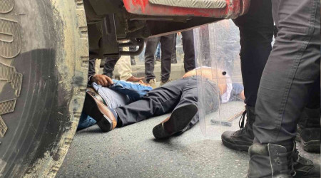 Bazı vatandaşlar ise araçların altına yatarak yolu trafiğe kapatmaya çalıştı. Bu sırada fenalaşan bir vatandaşa, ambulansla hastaneye kaldırıldı.