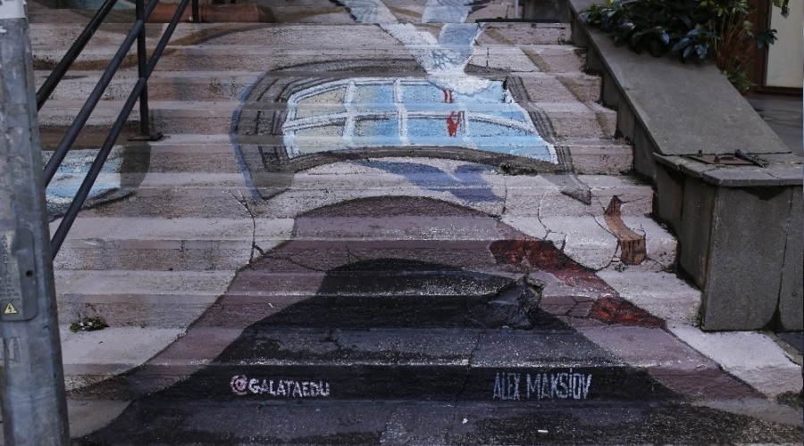 Beyoğlu Belediyesi tarafından cadde ve sokakların daha güzel bir görünüme kavuşturulması amacıyla başlatılan çalışma kapsamında İstanbul Galata Üniversitesi ile işbirliği yapıldı. Bu kapsamda Galata Kulesi'nin üç boyutlu figürü Ukraynalı ünlü ressam Alex Maksiov, tarafından üniversitenin yanında bulunan merdivenlere resmedildi. Mimarlık öğrencilerinin de yer aldığı çalışma sonrası merdivenler, Beyoğlu Belediye Başkanı Haydar Ali Yıldız ve üniversite yetkililerin katıldığı törenle yeniden vatandaşların kullanımına açıldı. Çalışma kapsamında Hezarfen Çelebi'den Galata'nın tarihi binalarına, semtin dokusu 3D tekniği ile merdivenlere yansıtıldı.