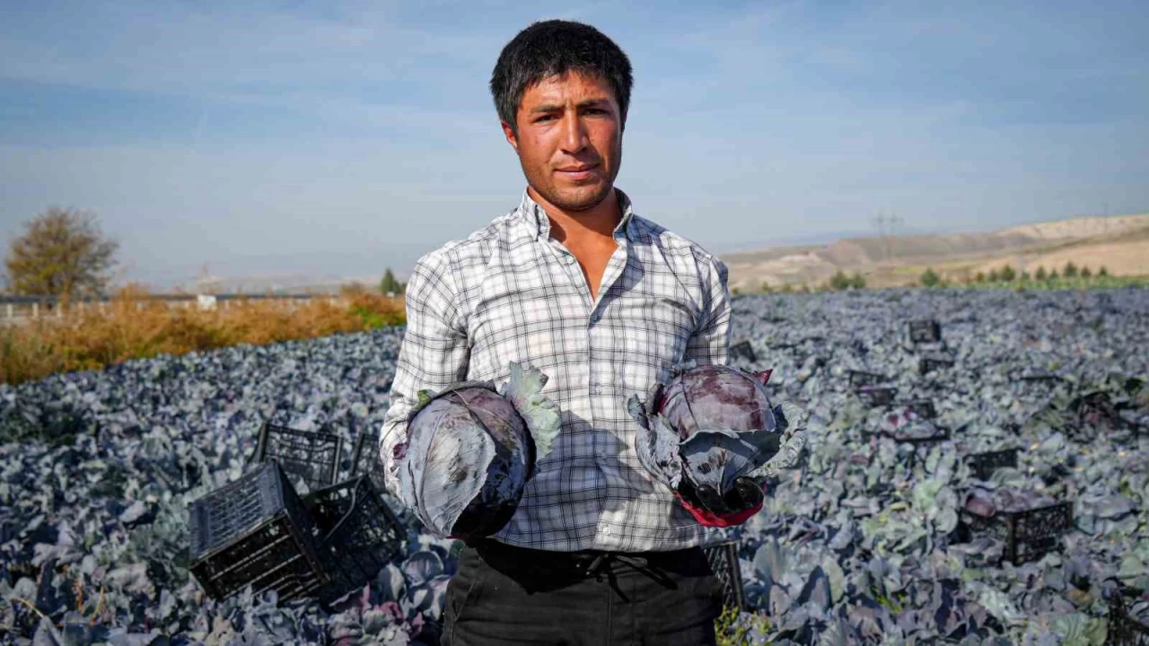 Beypazarı'nda mor lahana hasadı sürüyor: 'Susuzluk sıkıntısı var'