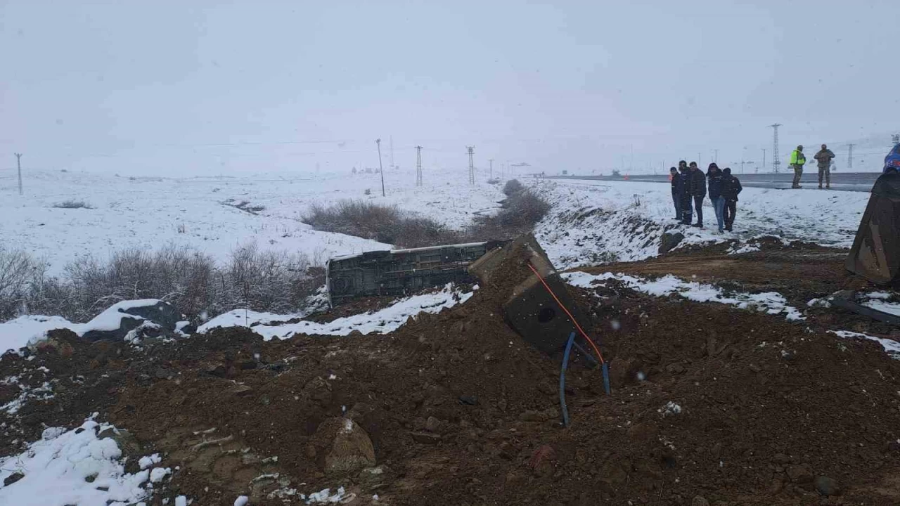 Bingöl'de işçileri taşıyan Mercedes marka transit, sürücüsünün kayganlaşan yolda direksiyon hakimiyetini kaybetmesi sonucu şarampole yuvarlandı