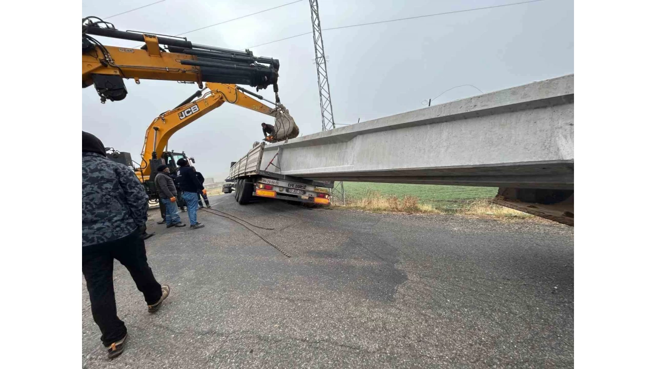 Bingöl'de çiftlik için çatı bloğu taşıyan tır, virajı alamayınca yan yattı. Yaralananın olmadığı kazada, maddi hasar meydana geldi
