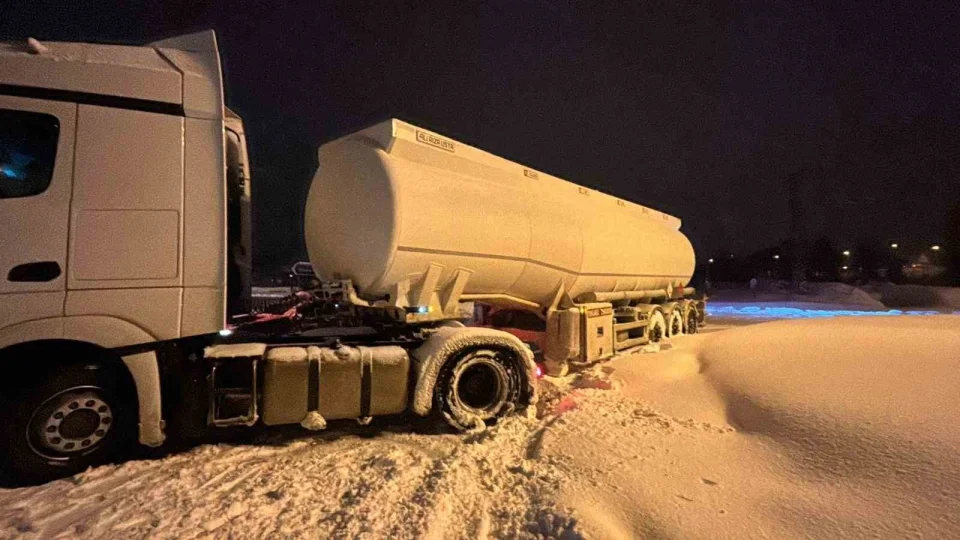 Bolu'da etkisini artıran yoğun kar yağışı nedeniyle Abant Gişeleri bağlantı yolunda bir tır kontrolden çıkarak şarampole kaydı. Kar kalınlığının 40 santimetreyi aştığı Bolu Dağı güzergahı, ağır tonajlı araçların geçişine kapatıldı.