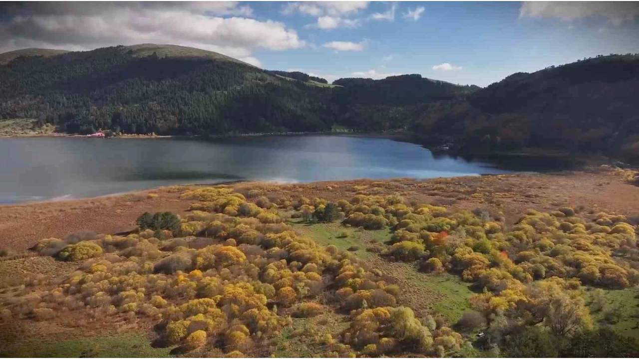 Dronla havadan görüntülenen Abant Gölü Milli Parkı'nda sarı, kırmızı ve yeşilin tonlarının oluşturduğu görsel şölen kartpostallık manzaralar ortaya çıkardı. Göl çevresinde yürüyüş yapan vatandaşlar, sonbaharın tadını çıkartırken bol bol fotoğraf çektirdi.