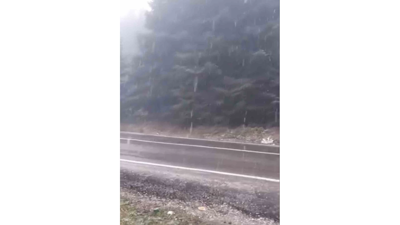 Bolu'da sabah saatlerinde etkili olan yağmur yağışı yüksek kesimlerde yerini kar yağışına bıraktı.