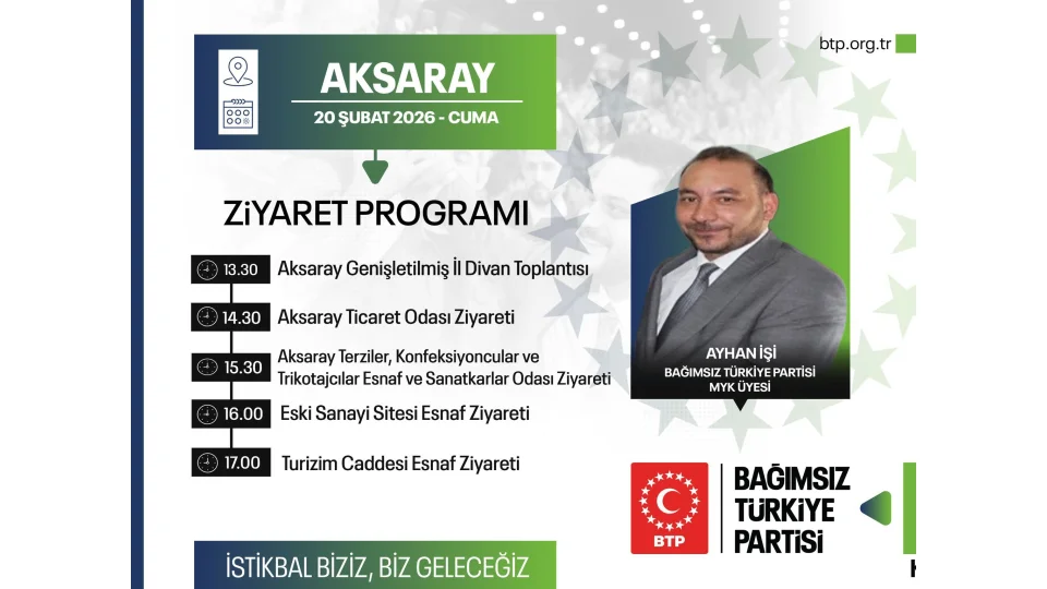 Bağımsız Türkiye Partisi Aksaray İl Teşkilatı, kent genelinde kapsamlı bir program gerçekleştirerek sivil toplum kuruluşları, esnaf ve teşkilat mensuplarıyla bir araya geldi