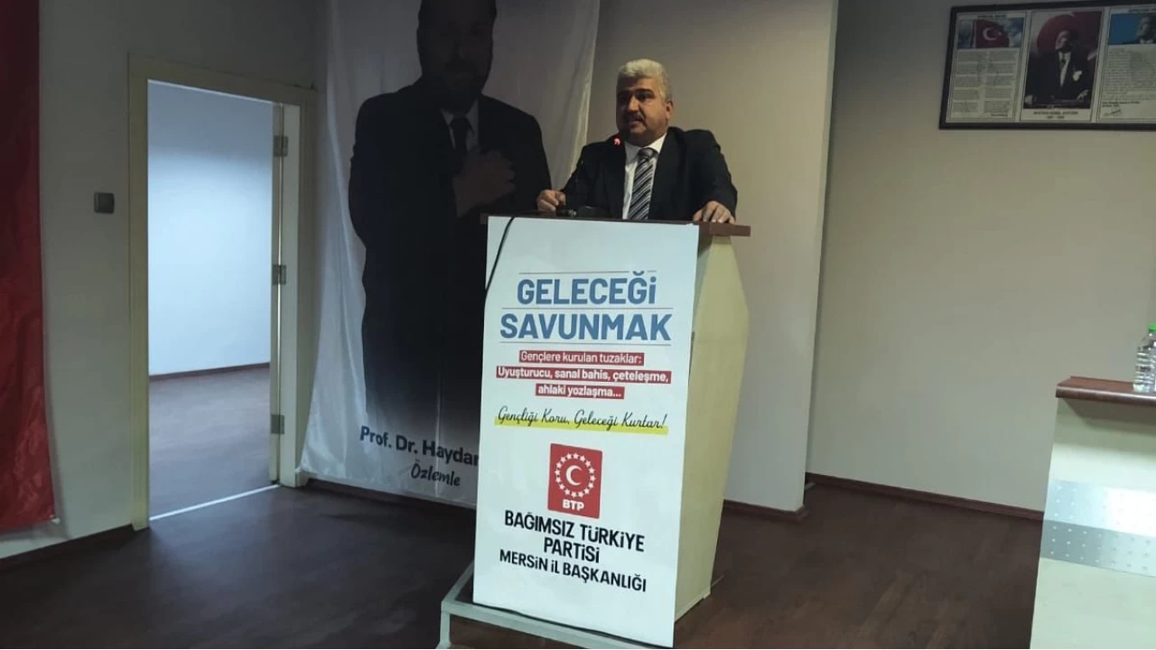 Bağımsız Türkiye Partisi Mersin İl Başkanlığı, geçtiğimiz hafta sonu "Geleceği Savunmak: Gençlerimiz İçin El Ele" programı gerçekleştirdi. Programda konuşan BTP Genel Başkan Yardımcısı İsmail Çetin, "Bugün gençlerimizin suç örgütleri, yasa dışı bahis ve yozlaşmış dijital içeriklere yöneldiğini endişeyle izliyoruz. Bu durum bireysel hataların değil; ekonomik sıkıntıların, eğitim sistemindeki çöküşün, aile yapısındaki kırılmaların, sosyal medyanın etkisinin ve dinin özünden uzaklaştırılmasının bir sonucudur" dedi