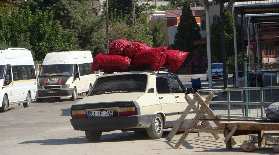 Adana'nın Kozan ilçesinde her yıl Ağustos ayında başlayan salça sezonunda salçalık biber çuvallarının otomobillerle taşınması renkli görüntüler oluşturdu.