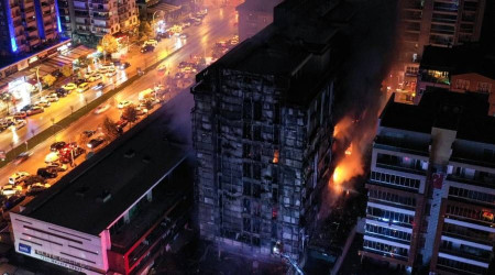 Hızlı yayılan alevler, onlarca büronun bulunduğu iş merkezinin tamamını sardı.