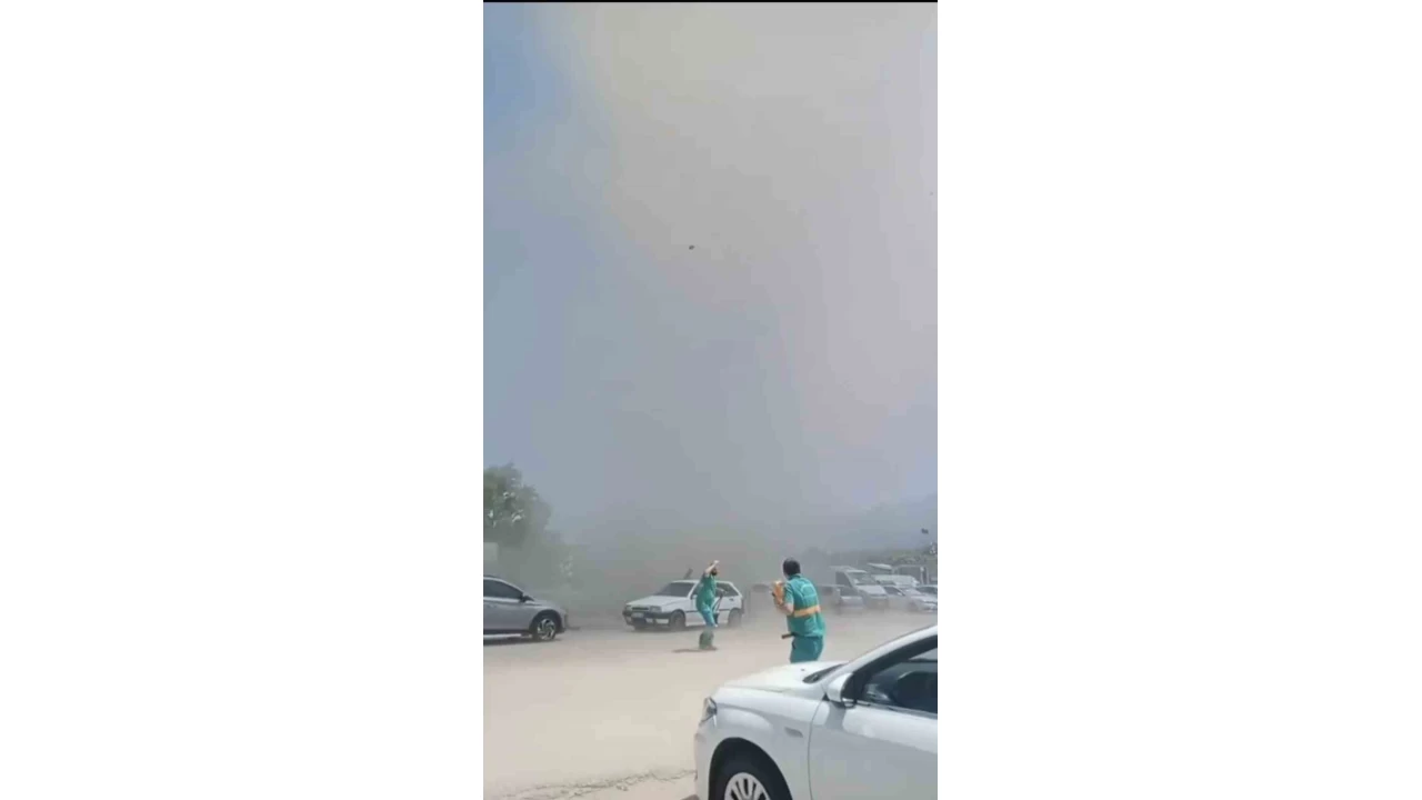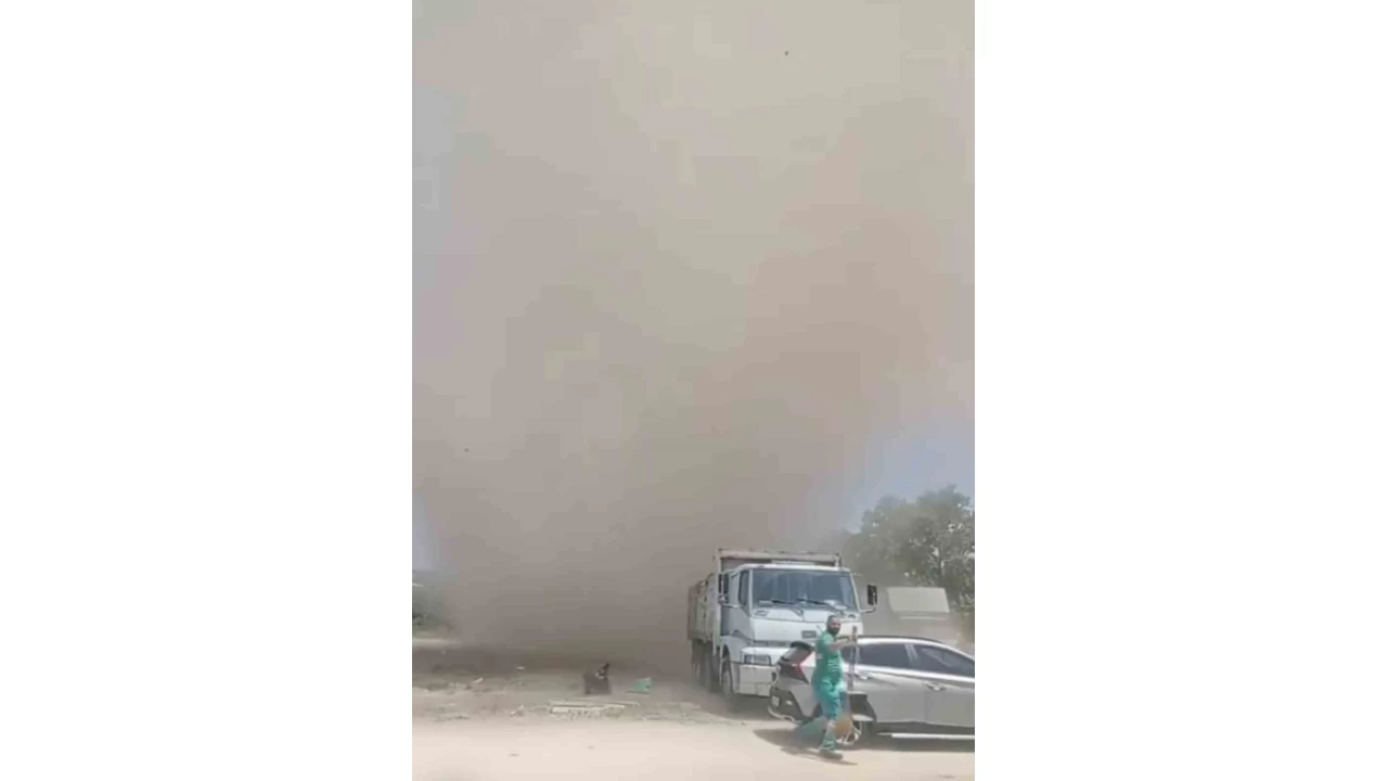 Görüntülerde, rüzgarın etkisiyle çevredeki bazı hafif cisimlerin savrulduğu, insanların panik içinde güvenli alanlara doğru yöneldiği anlar yer aldı.