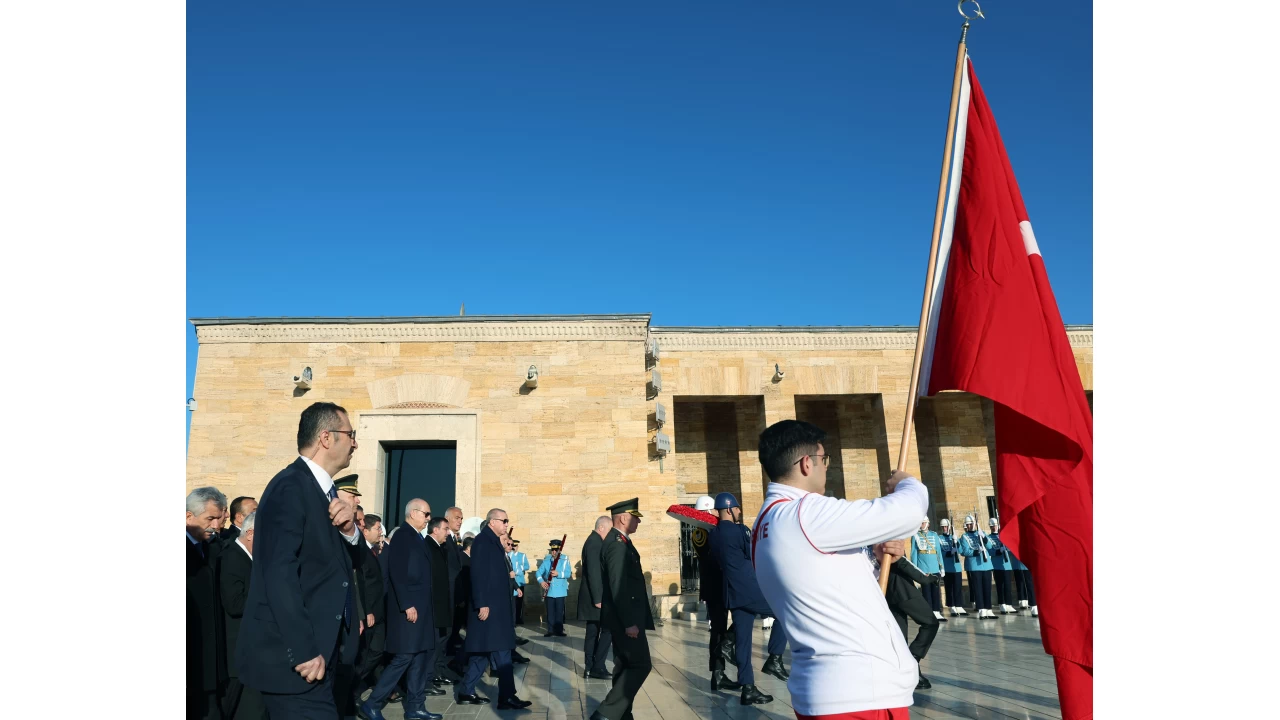 Saygı duruşu sırasında gönderdeki Türk bayrağı yarıya indirildi. Cumhurbaşkanı Erdoğan ve protokolde yer alan devlet erkanı, daha sonra Misak-ı Milli Kulesi'ne geçti.