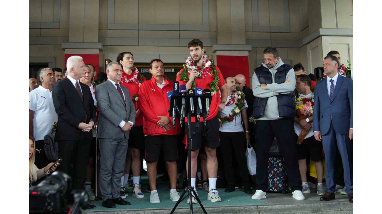 A Milli Erkek Basketbol Takımı, Letonya'nın başkenti Riga'da düzenlenen 2025 Avrupa Basketbol Şampiyonası'nın (EuroBasket 2025) finalinde Almanya'ya 88-83'lük skorla yenilerek Avrupa ikincisi oldu. Avrupa şampiyonası tarihinde ikinci kez gümüş madalya kazanan 12 Dev Adam, organizasyonun ardından bugün Türkiye'ye döndü. Havalimanından çıkışın ardından milli basketbolcular Cedi Osman ve Alperen Şengün, basın mensuplarına açıklamalarda bulundu.