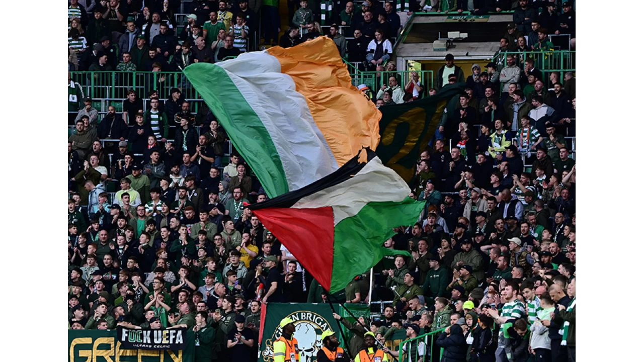 Uzun süredir Filistin'e destek veren Celtic taraftarları, Braga'nın Celtic Park'ta 2-0 kazandığı mücadelede "UEFA, İsrail'i normalleştirerek soykırıma ortak oluyor. Onları hemen atın!" pankartı açtı.