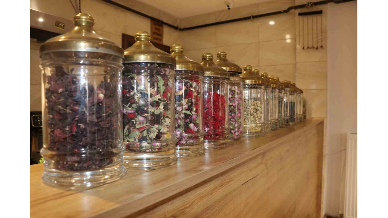 Kış aylarının gelmesiyle birlikte rağbetin daha da arttığı bitki çayları, özellikle soğuk havalarda şifa arayan vatandaşların tercihi oluyor. Kafede hazırlanan çaylar arasında 'Aşk Çayı', 'Hürrem Sultan Çayı' ve 'Kelebek Rüyası' gibi dikkat çekici isimler bulunuyor.