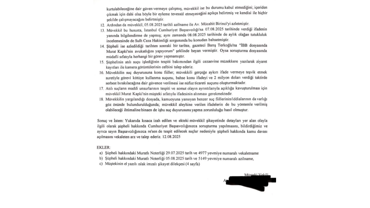 Buradan somut olay sadece savcının bilmesi gereken bir şeyi avukat bilince Yener Toruner'e gidiyor ve konuşturamadıkları Fatih Keleş'e, 'Fatih Keleş'in kardeşine sarı bir zarfta küçük bir para verdik, 15 bin dolar falan de bari. Bu büyük bir şey değil.'